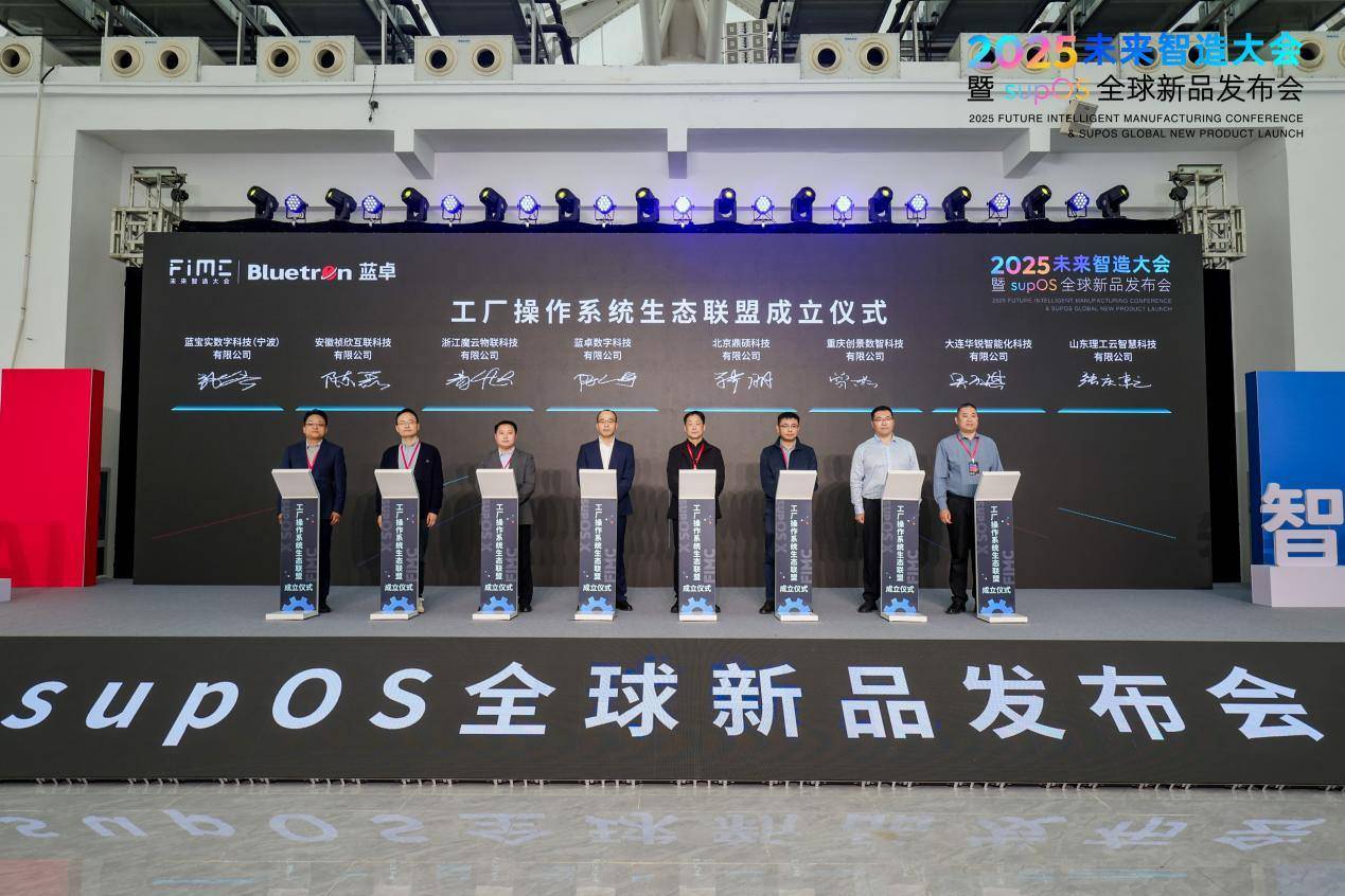 大会同期举行两大里程碑仪式,为工业数字化转型注入生态合力。在全体嘉宾见证下,蓝卓正式启动将supOS核心框架代码捐赠给开放原子开源基金会,标志着中国工厂操作系统迈入“开源共创、共建共享”的产业化协作新阶段,将进一步推动行业技术标准化与创新加速。随后,蓝卓联合北京鼎硕科技、浙江魔云物联等八家生态伙伴共同成立“工厂操作系统生态联盟”,联盟聚焦标准共研、方案共创、市场共拓、生态共赢四大核心目标,通过建立技术共享与商业协作机制,破解工业数字化项目中重复建设、集成成本高等痛点,构建安全可信、互利共赢的产业共同体,加速先进解决方案规模化落地。