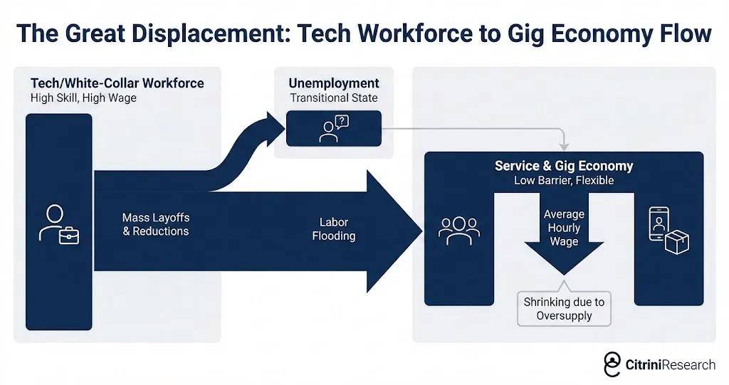 于是财政面对一个结构性悖论:需要向家庭转移更多资金,同时从家庭收到的税却更少。情景里政府开始讨论“Transition Economy Act”(以赤字+对AI推理算力征税为资金来源的直接转移),以及更激进的“Shared AI Prosperity Act”(对“智能基础设施回报”建立公共索取权,类似主权基金或AI产出特许权,用分红支持转移)。政治分歧被写得尖锐:把转移称为马克思主义、担忧算力税让位于中国;担心税制被 incumbents 写成监管俘获;财政强调赤字不可持续,鸽派拿GFC后的过早紧缩当反例。